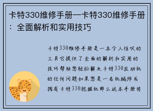 卡特330维修手册—卡特330维修手册:全面解析和实用技巧